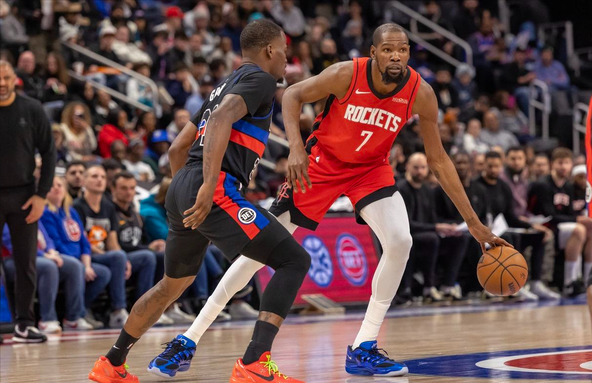此役,两队外线手感都不太好,火箭方面除了杜兰特三分线外11中5,另外球员加起来才投进4球,全队三分命中率仅32.8%;活塞方面,两大空间点邓肯-罗宾逊与托拜-哈里斯都手感失准,全队外线32中7,三分命中率更是跌至21.9%。