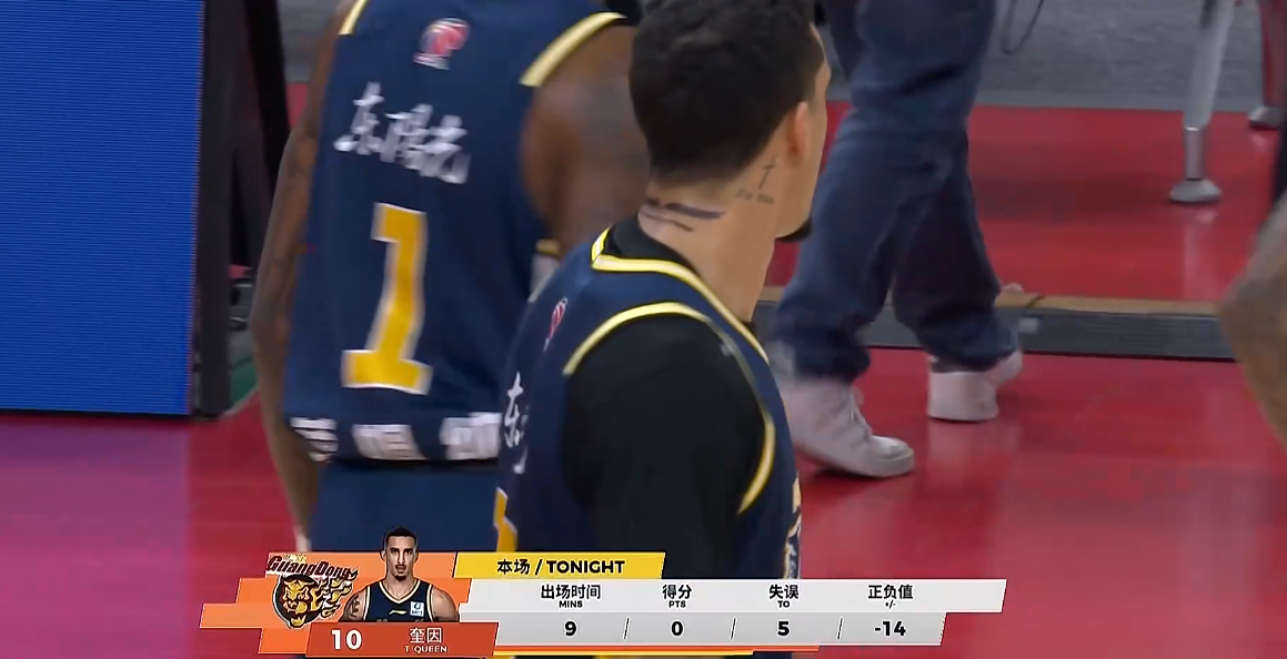 奎因也该换,因为两场对阵上海的比赛,奎因都让张镇麟给打爆了,第二节期间,奎因还上演了一次快攻上篮不进和空篮三分不敢投、与杜润旺互相甩锅拒投三分的名场面,好好的一次快攻,因为这两人不敢出手三分,球传来传去,最后还是张皓嘉背了锅,此时广东队的三分球是13中3,大家手感都很铁,都变得不敢出手了。