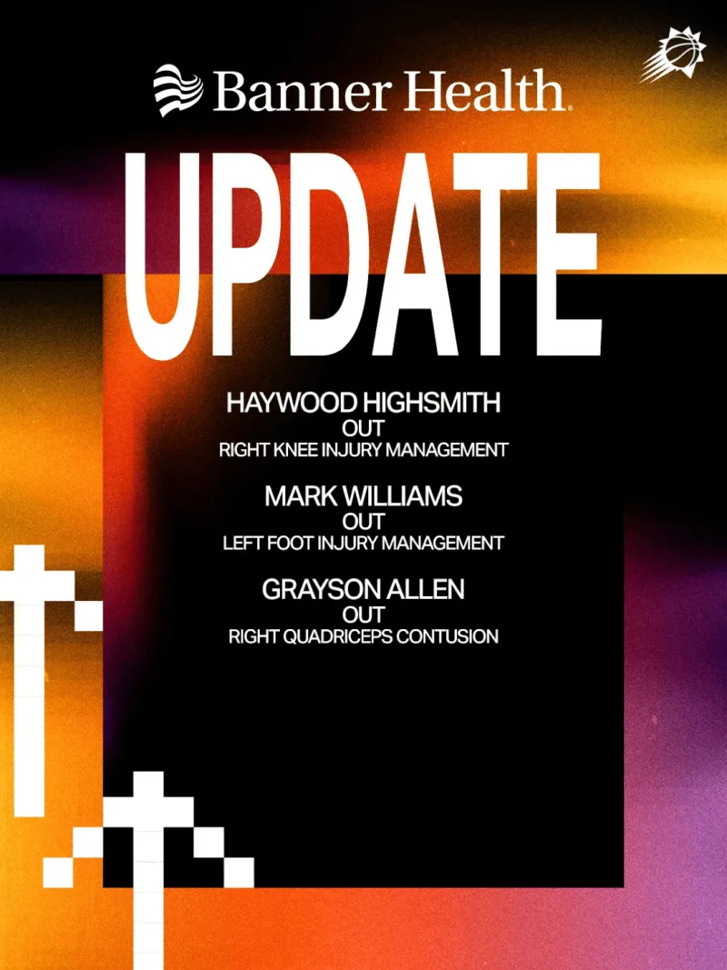 开云体育app下载-太阳伤病更新:马克-威廉姆斯与格雷森-阿伦缺席今日比赛